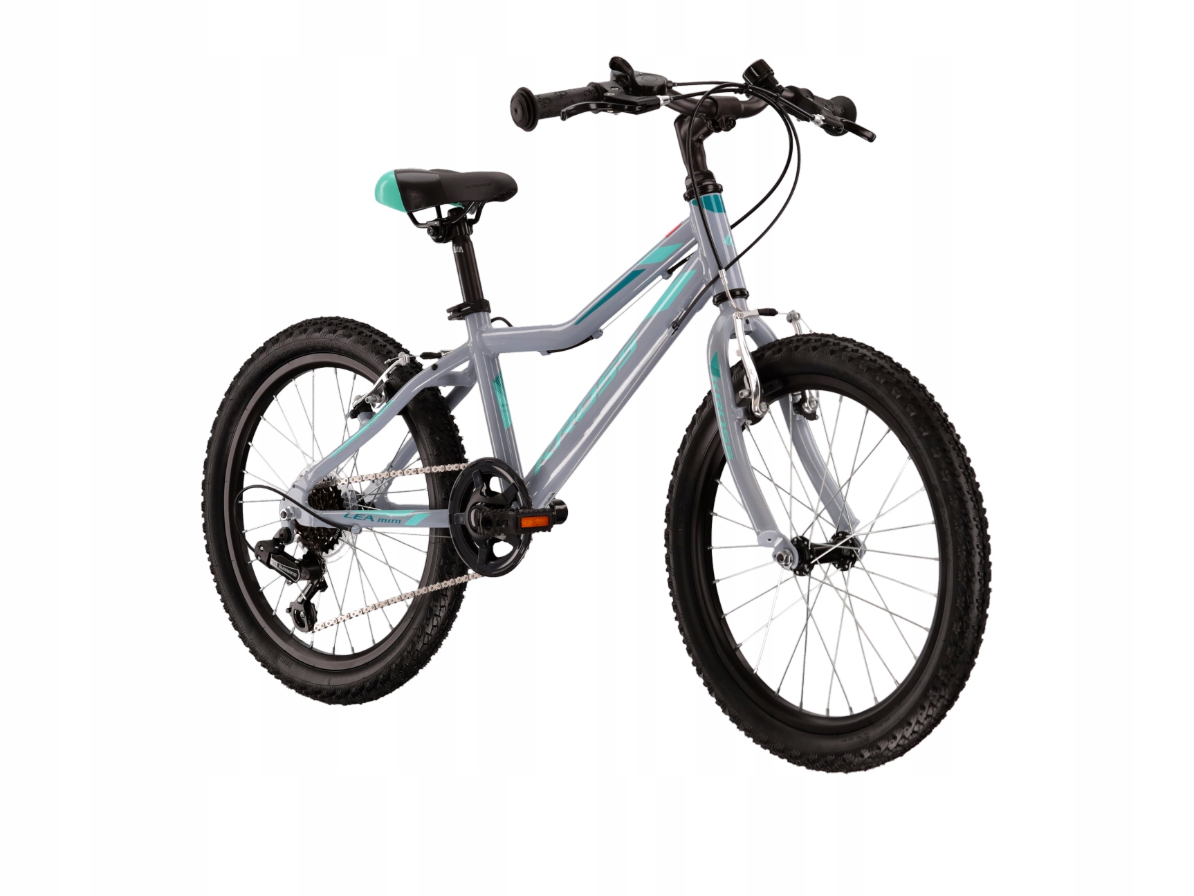 Rower KROSS Lea Mini 1.0 został wyposażony w napęd w systemie 1×6. Umożliwi to sprawne pokonywanie podjazdów oraz szybką jazdę po płaskich odcinkach. Tylna przerzutka od Shimano to trwała i sprawdzona konstrukcja, która zapewnia płynną zmianę przełożeń.Za pewne i przewidywalne hamowanie odpowiadają hamulce v-brake, które oferują wysoką siłę hamowania niezależnie od aktualnych warunków atmosferycznych. Są lżejsze, dużo prostsze i tańsze w eksploatacji niż hamulce tarczowe, a również potrafią skutecznie zatrzymać rower.